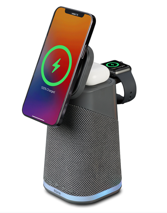 Ihome Power Tower Triple Wireless Charging Stand W/ Bluetooth Speaker